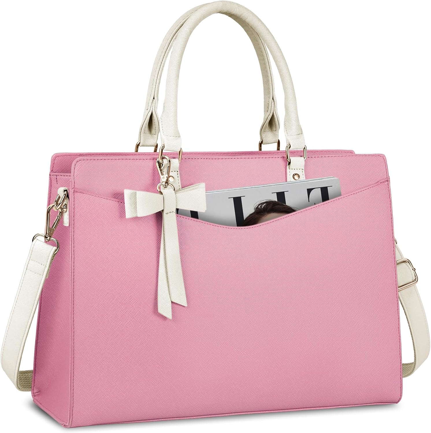 • Elegant Laptop Tote: Work bags for women come with a detachable premium bow, adds an extra feminine touch to this minimalist laptop tote bag for women. To tie or not to tie, both which personalize your styles and retain a sense of chic. Perfect gift choices for anniversary, birthday, Mother’s Day, Valentine’s Day and Christmas. Tips: this laptop bag for women has been patented on its appearance